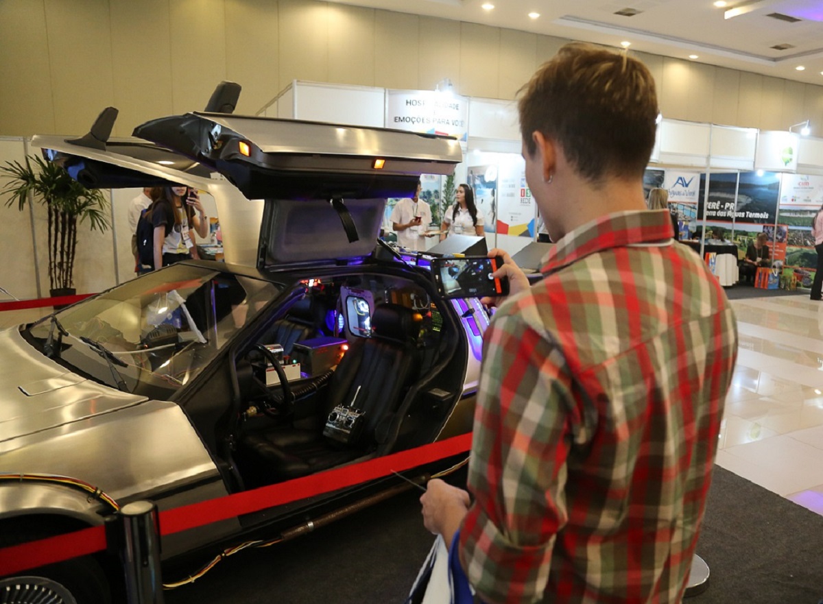 - O Delorean DMC-12, ícone do filme De Volta para o Futuro, conquistou o público de uma feira em Foz. Foto: Roberto Lemos