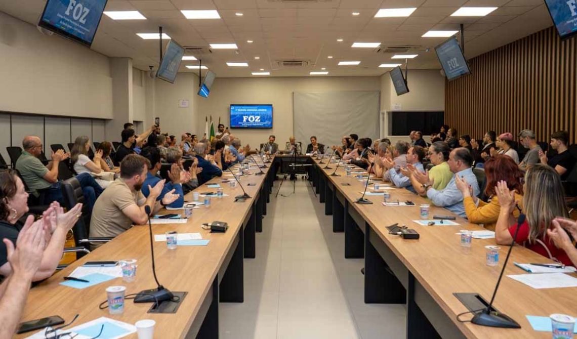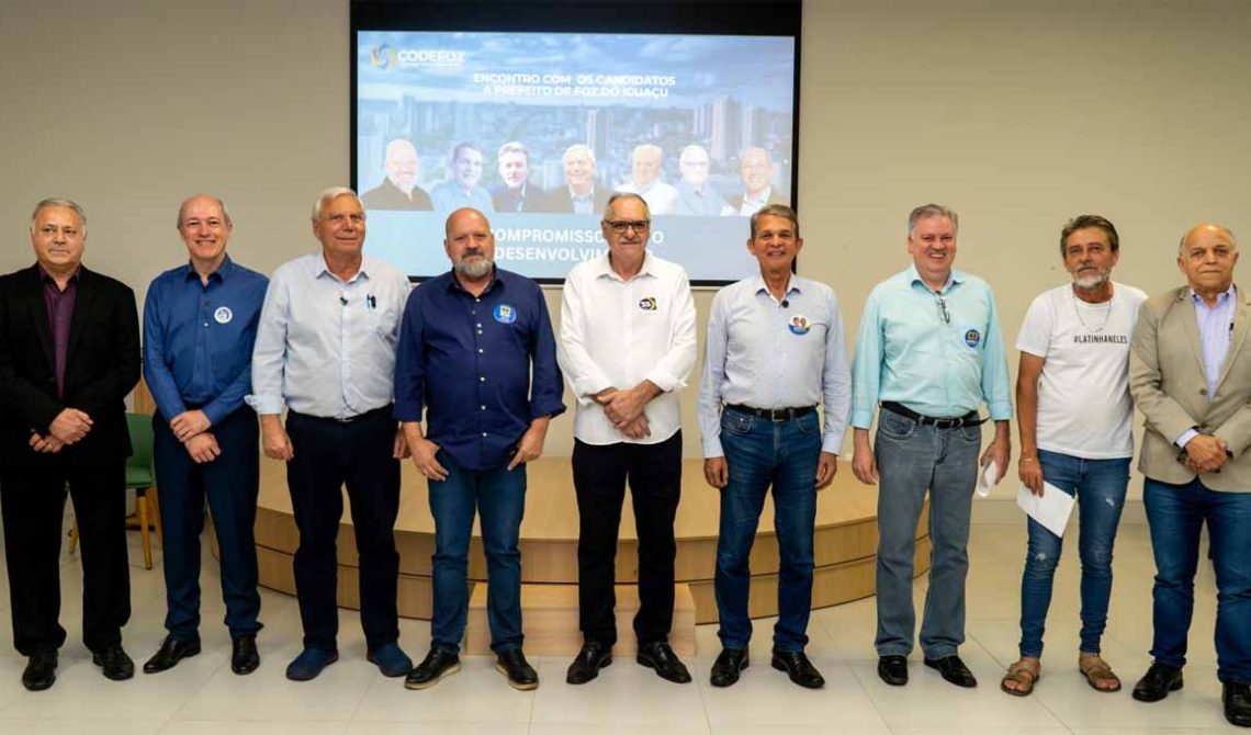 Postulantes ao cargo de gestor assinaram compromisso com as prioridades para o crescimento de Foz do Iguaçu, em plenária com lideranças e agentes públicos.